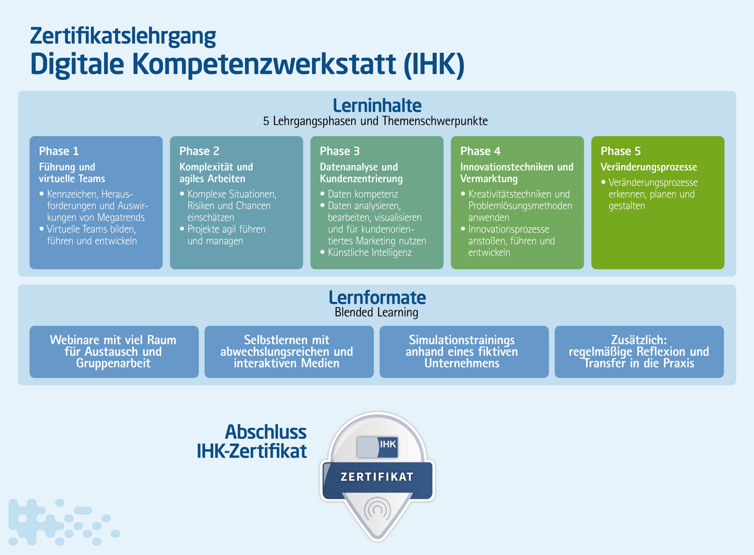 „Das Wertvollste, was ich gelernt habe, ist Teamführung, sowohl virtuell, in Präsenz oder hybrid. Der Aufbau des Lehrgangs war sehr ausgeglichen zwischen Webinaren, Selbstlernen und Simulationstrainings. Ich konnte das Lernen flexibel einteilen, habe in der Bahn gelernt oder unterwegs mit dem Smartphone. Wichtig war für mich das Zertifikat, weil es belegt, dass ich auf die Zukunft vorbereitet bin.”