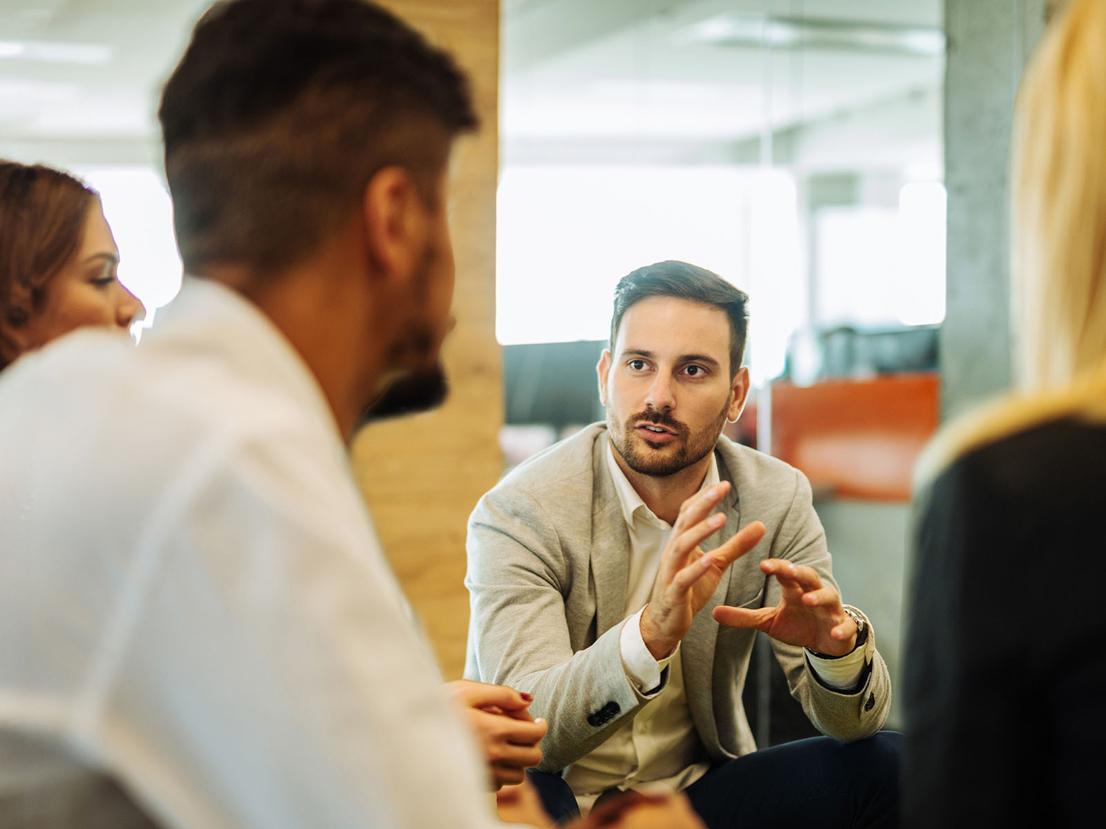 Bild zwei Personen sprechen. Nutzung für das Seminar Portfoliomanagement für Immobilienmakler III: Besonderheiten beim Kauf von Eigentumswohnungen sowie Portfoliomanagement für Immobilienmakler: Home Staging als Verkaufsförderung